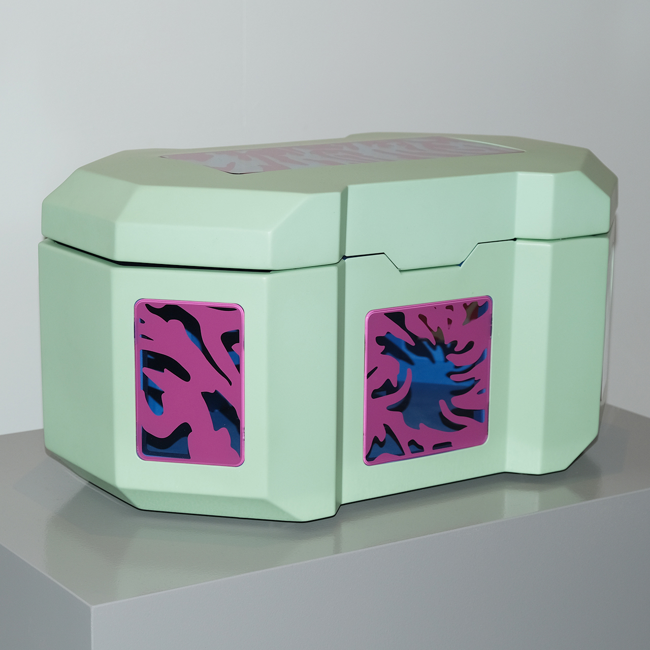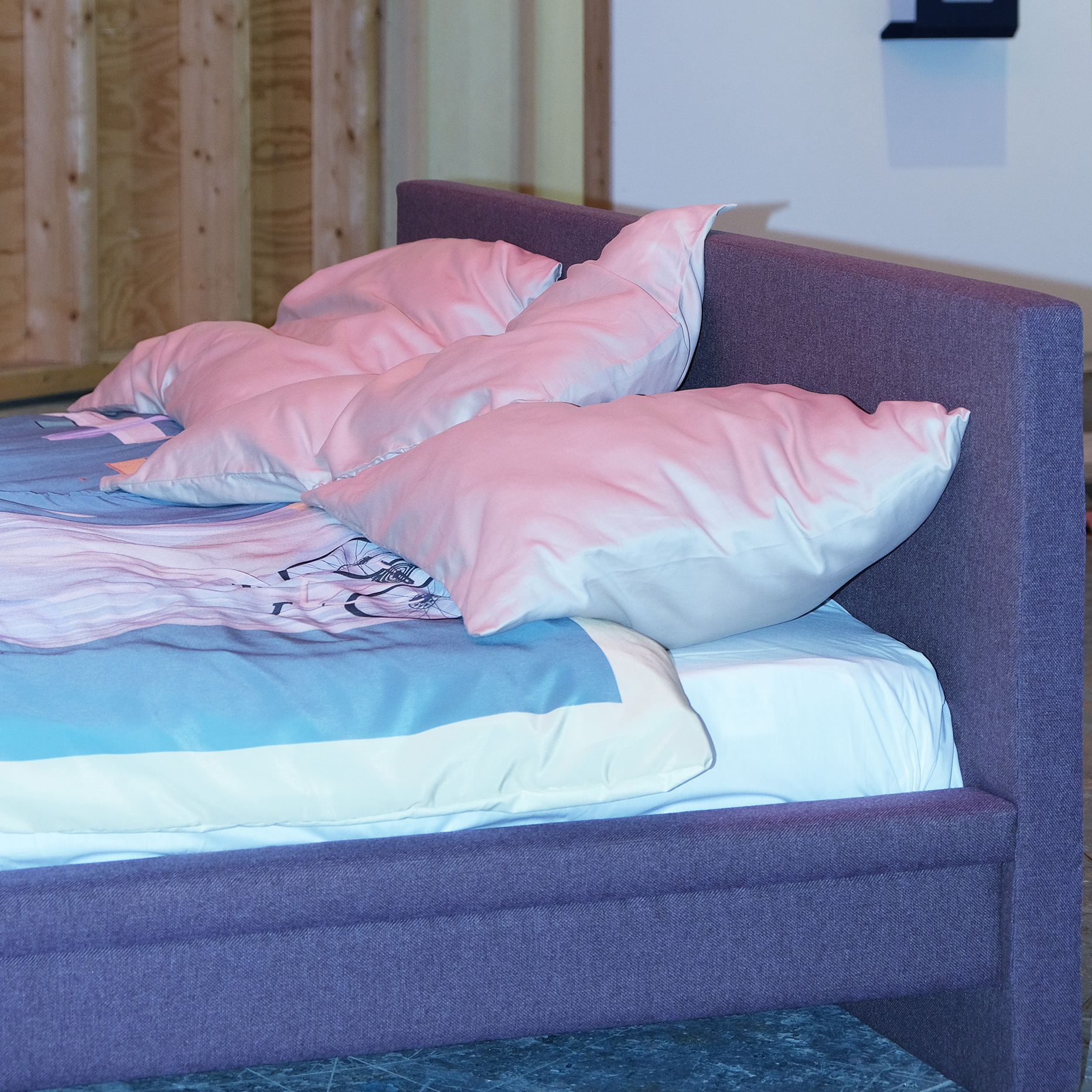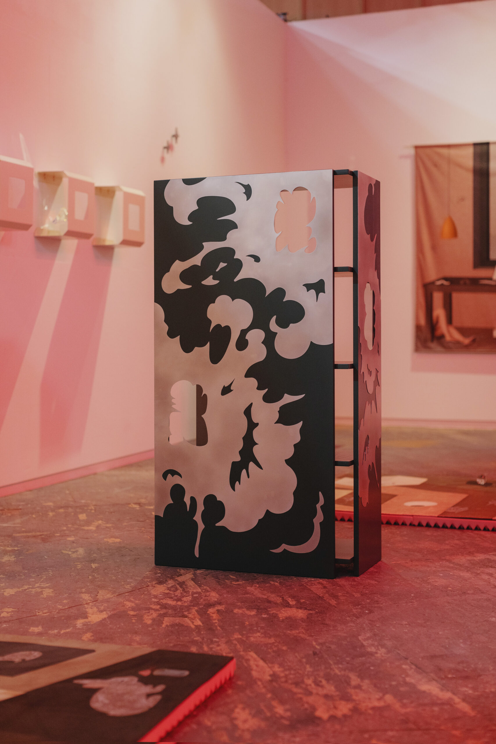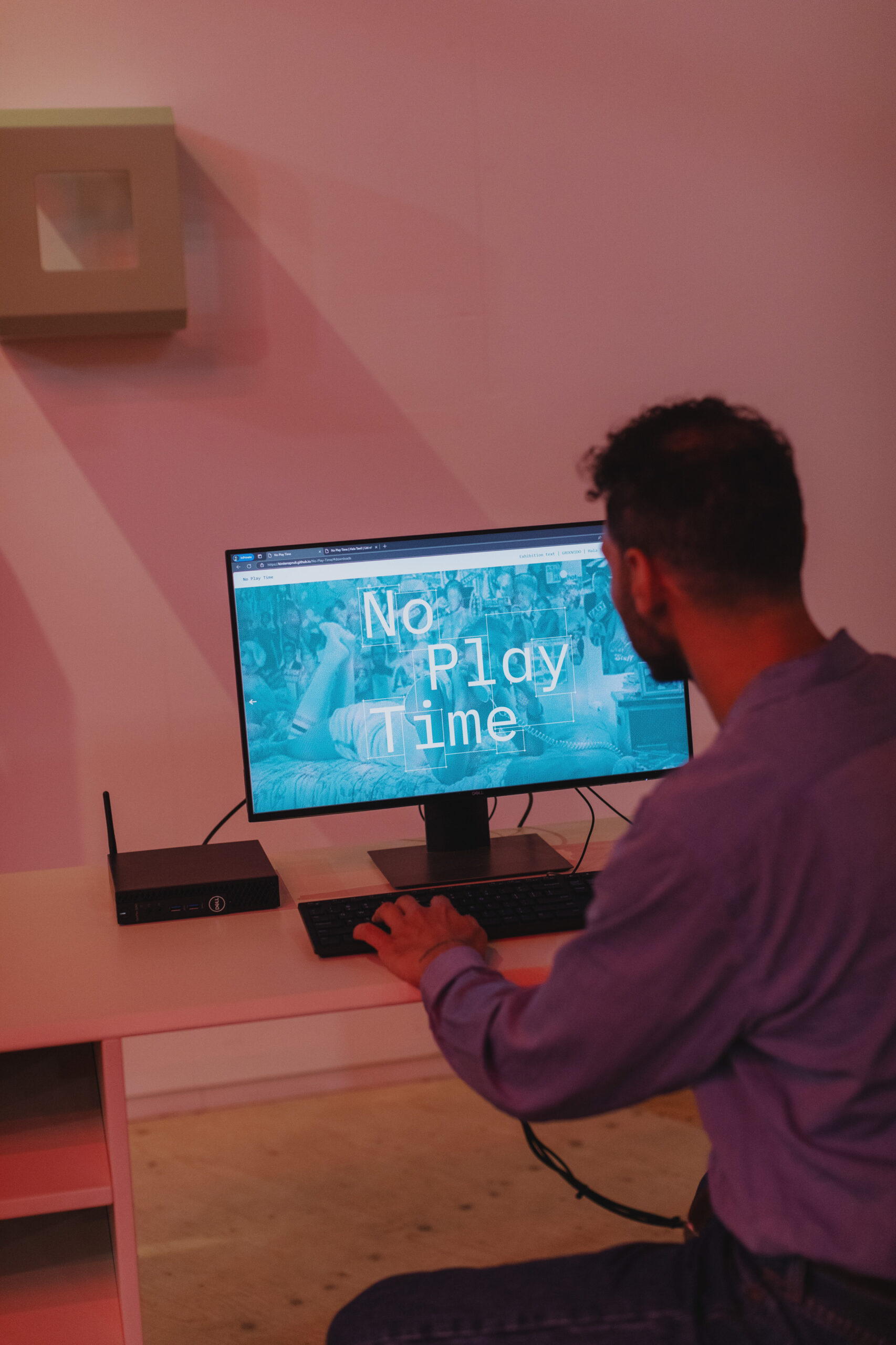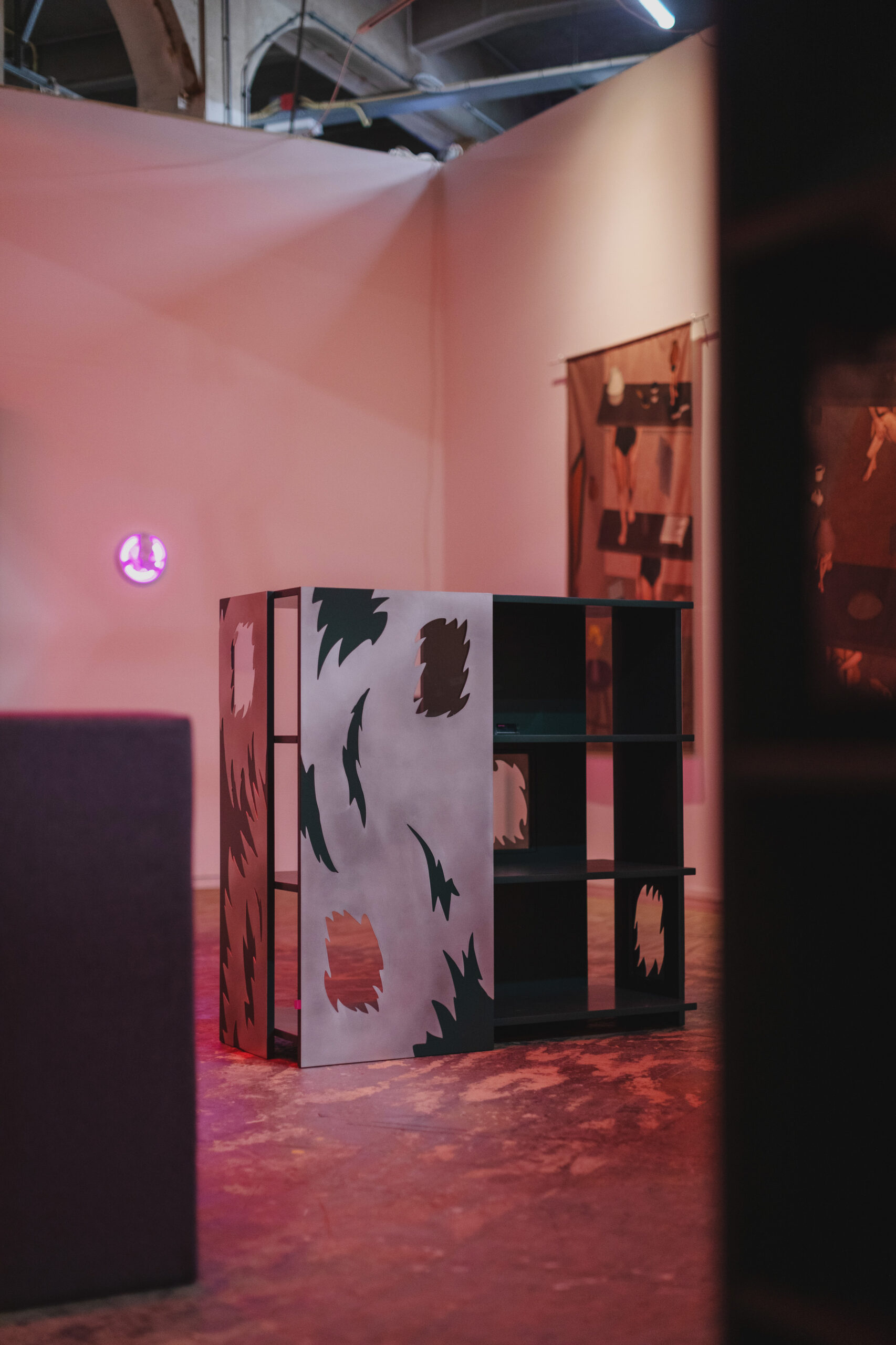 The exhibition “No Play Time” presents a unique dialogue between the soft, intimate textiles of artist Hala Tawil and the striking, conceptual furniture designs of GROOVIDO. Together, their works create a stylized teenage bedroom that invites visitors to explore the intersection of personal memory, identity, and material culture.